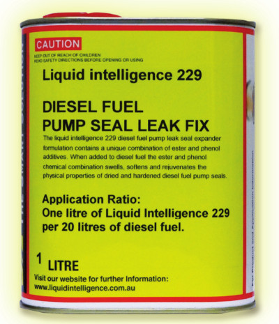 The Liquid Intelligence 229 Diesel Fuel Pump Seal Leak Fix formulation contains a unique combination of ester and phenol additives. When added to diesel fuel, the ester and phenol chemical combination swells and rejuvenates nitrile diesel fuel pump seals – completely eliminating leaks.