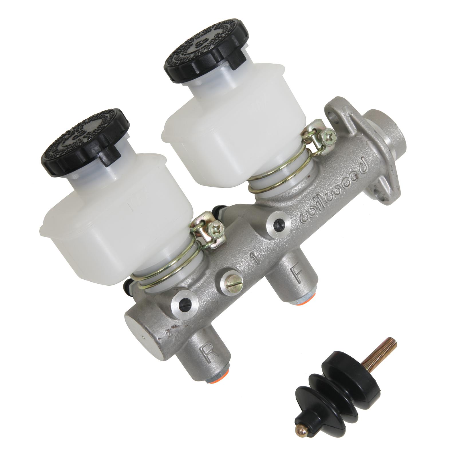Wilwood tandem chamber master cylinders represent the latest refinements in brake pressure actuation and fluid control. The features incorporated in this innovative and unique design make them the perfect choice for a wide range of custom manual or power brake applications. High-pressure die casting of a premium alloy produces a high-capacity body that is lightweight, looks great, and has the durability for competition. A black anodized, machined billet lid captures a pressure-balanced bellows gasket with 100 percent sealing against moisture invasion or fluid leakage.