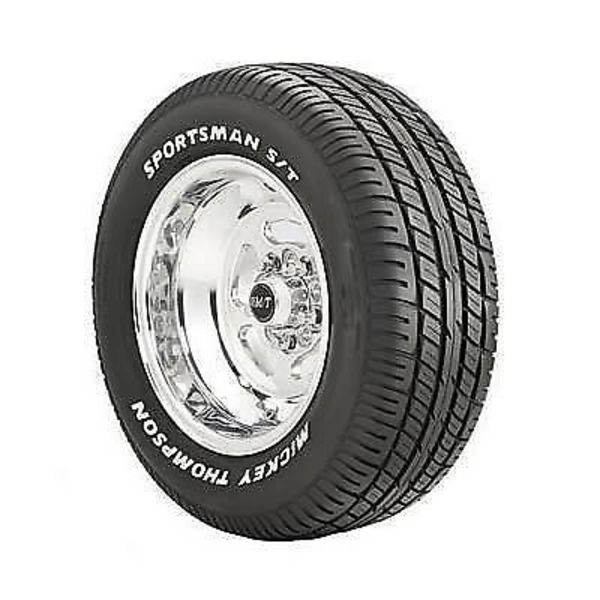 Mickey Thompson Sportsman front tires are one of the narrowest tires available today. Their D.O.T. approved tread design gives them the drivability you need on the street, and they're a perfect match for Sportsman rear tires. Other features include good looking black sidewalls and thick nylon construction, for a smooth ride and long-lasting durability. 29550 R15 1 PAIR MT6031. Tire Size 295/50-15. Wheel Diameter 15 in. Sidewall Style Solid white letters. Tire Construction Radial. Directional No. Tire Diameter 26.80 in. Section Width 12.22 in. Tread Width 10.10 in. Minimum Recommended Wheel Width 8.00 in. Maximum Recommended Wheel Width 10.00 in. Speed Rating T Load Range 105. Asymmetrical Tread Pattern No. DOT-Approved Yes. Tube Required No. Max Load Single (lbs) 2,061 lbs.. Quantity 1 Pair