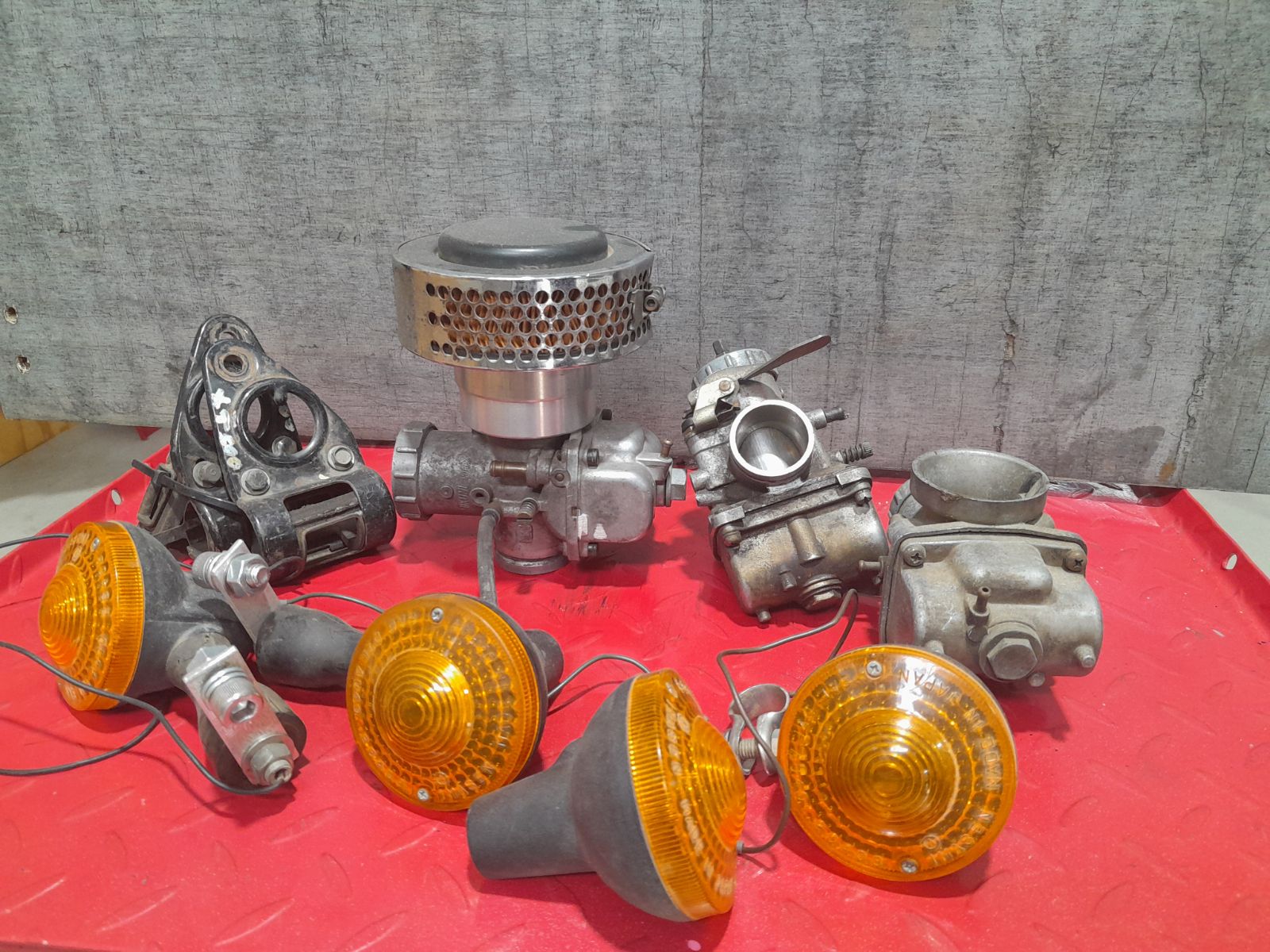 1 X 38mm, $100 lot; Kawasaki indicators $80 the lot, XT headlight brackets $10. Phone Leigh.
