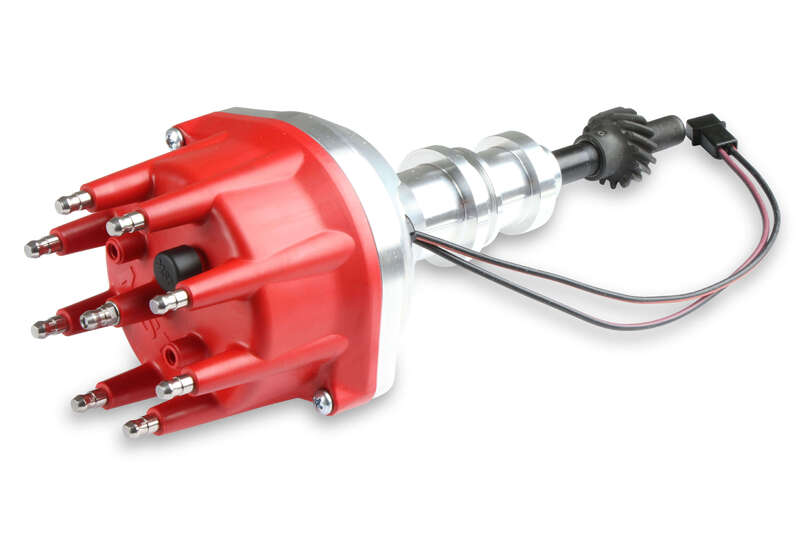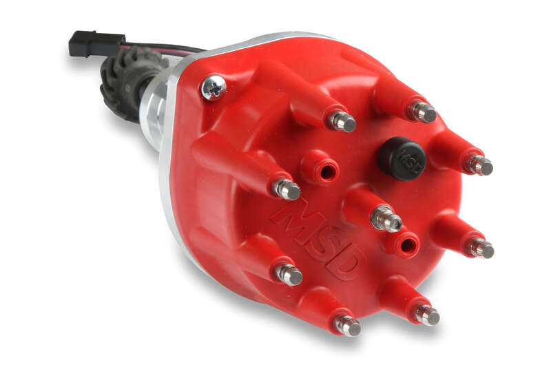Specifically designed for use with the Holley Ford Hi-Ram carburetor intake manifolds, the Ford distributors are built on the proven foundation of the MSD Pro-Billet distributor line. They rely on MSD's race proven magnetic pickup and precision reluctor to deliver accurate trigger signals to the MSD Ignition throughout RPM range. The reluctor assembly is turned by a hardened steel shaft which rides in a sealed ball bearing for high rpm stability and endurance. Mounted to the top of this shaft is a fully adjustable mechanical advance assembly, and while at the bottom, you have a steel gear for use with hydraulic roller camshafts.Features:Designed specifically for the Holley Ford 351W Hi-Ram Carbureted Manifold P/N 300-243, 300-243BK, with 300-207, 300-207BK Hi-Ram Plenum Top Supplied with a steel distributor gear, compatible with most hydraulic roller cam applications Must be used with an MSD Ignition Control that accepts magnetic inputs signal Nylon pads ensure smooth operation of the advance weights Advance weight pins are staked and tig welded to the plate for strength and durability Mechanical advance assembly can be locked out for crank trigger systems Advance plate and weights are fine blanked from chrome moly steel and QPQ coated for friction reduction Polished steel shaft is QPQ coated and guided by a sealed ball bearing Maintenance-free magnetic pickup and precision reluctor create stable trigger signals throughout the rpm range CNC machined billet aluminum housing and billet aluminum base Easy-to-adjust mechanical advance with supplied springs and stop bushings provide the ability to create a timing curve perfect for your engine