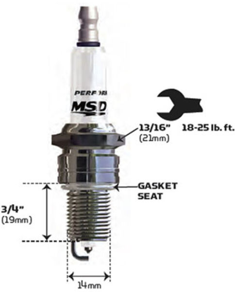 MSD�s spark plugs are engineered to improve the efficiency of the combustion process to create the most power possible combined with increased durability. The center tip of the plug is made from iridium to promote the best spark and increase resilience. A proprietary ceramic material enhances the dielectric strength of the plug housing forcing the spark, even under extreme cylinder pressures, to jump across the plug gap to the ground electrode. This electrode is machined to expose more spark to the incoming gases to promote the most effective combustion event possible.