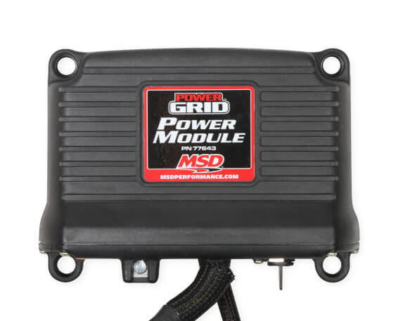 The MSD Power Module is a fully programmable, four stage solid state relay that can handle up to 20 Amps of current per channel. The Power Module eliminates the need for electromechanical relays, fuses and timers.Outputs can be controlled independently or simultaneously, giving great flexibility. It can be configured as a digital output (i.e. ON/OFF) or as a Pulse Width Modulated output (i.e. PWM) with user-programmable frequencies up to 10 Kilohertz. Outputs can use Time, RPM or temperature to control fans, pumps, nitrous systems and much more. A High Speed Data Logger can be used to record all functions when paired with the MSD PN 7730 Power Grid.Features:Takes the place of 4 electromechanical relays Built-in overcurrent protection, no fuses needed 80 Amp capacity, 4 channels rated up to 20 Amps each Each channel is controlled via input wires or as programmed in the MSDView software Can be used stand alone or with MSD Power Grid PN 7730 Trigger signals can include power, ground, temperature, or time Data Acquisition available when used with MSD Power Grid Available in Red (P/N 7764) or Black (P/N 77643)