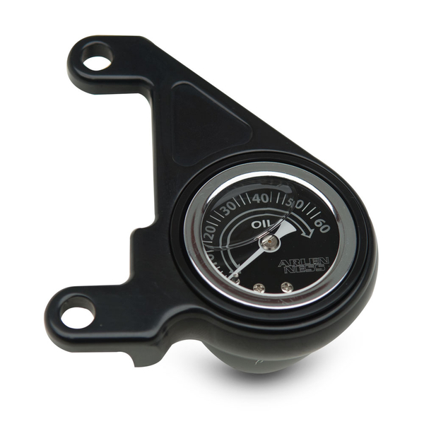 FITS 84-99 BIG TWIN EVO Arlen Ness oil pressure gauges, features stainless housing and glass lens, filled with vibration dampening glycerin for lasting performance.