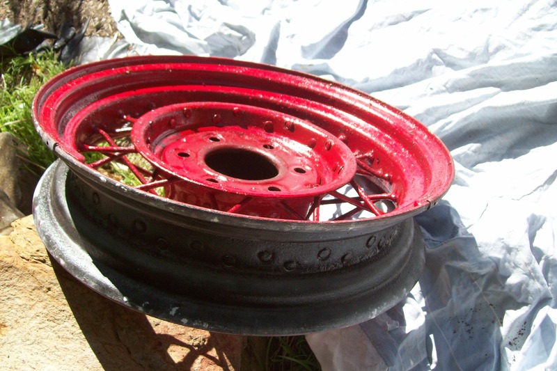 two old 1920,s to 1930,s American wire wheels and hubcaps for a Pontiac, assist in shipping at buyers cost.