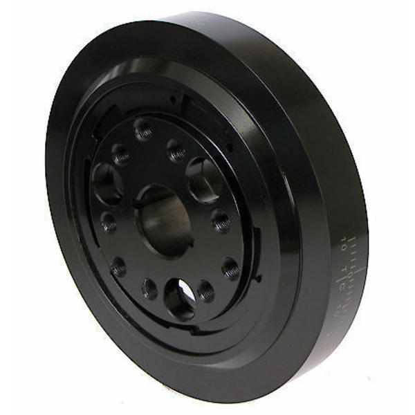PB2221-SC NUETRAL balance suit Chev 283-350 V8. The Powerbond Race series brings the advantages of bonded balancers to high revving race and street/race applications where an SFI approval is required. Every Powerbond Race series balancer features a precision CNC machined steel centre bonded to an equally strong steel inertia ring. Advanced design means that race series balancers are very light for an all steel product. An most cases they are only marginally heavier than the original cast iron balancer and generally much lighter than all steel balancers on the market.The steel inertia ring of the race series models is positively protected against forward and backward movement and has the assurance of bonded rubber to eliminate spinning. Every model has easy to read computer etched timing marks. All Powerbond Race series balancers meet SFI specification 18.1.