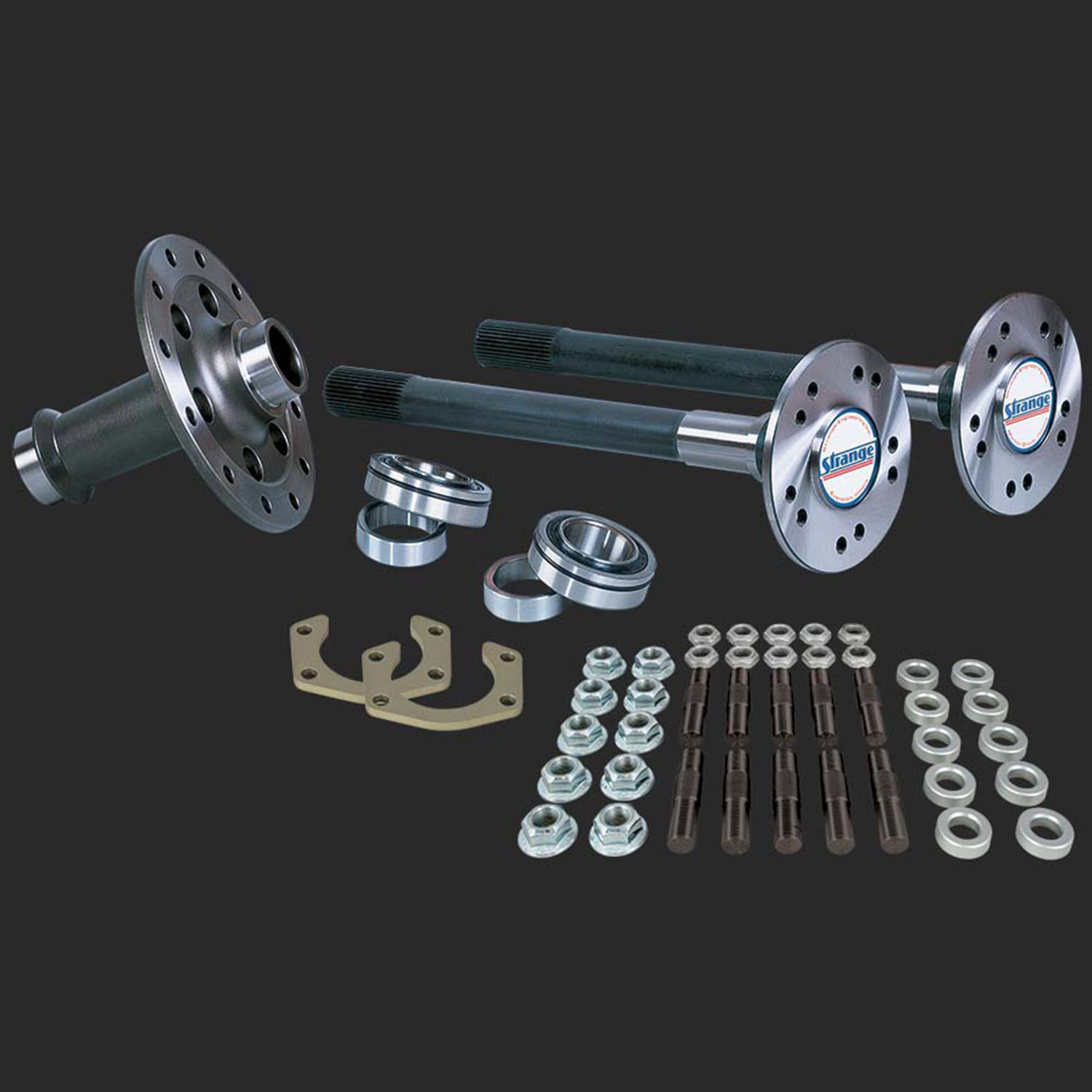 Strange Pro Race axles are forged from Hy-Tuf alloy steel that was originally developed for highly stressed landing gear in military aircraft. Hy-Tuf was originated in the class of Ultra-Strength alloys. The Hy-Tuf forging is low-carbon, high-manganese, high-nickel, and high-molybdenum steel. These axles are through-hardened, which allows for a racing shaft with an exceptionally high tensile strength (240,000 psi), while retaining ductility. Call 1-800-230-3030 for more information.