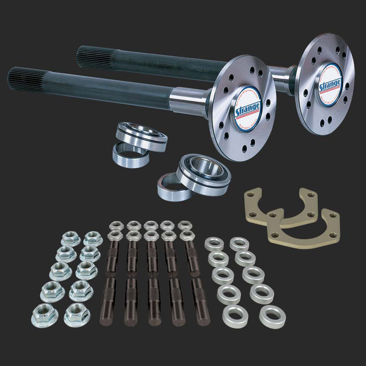 Strange Pro Race axles are forged from Hy-Tuf alloy steel that was originally developed for highly stressed landing gear in military aircraft. Hy-Tuf was originated in the class of Ultra-Strength alloys. The Hy-Tuf forging is low-carbon, high-manganese, high-nickel, and high-molybdenum steel. These axles are through-hardened, which allows for a racing shaft with an exceptionally high tensile strength (240,000 psi), while retaining ductility. Call 1-800-230-3030 for more information.