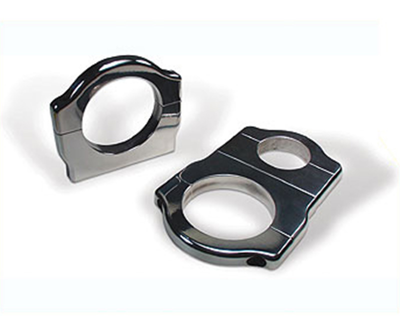 Provides secure mounting of remote reservoirs for shock absorbers without cylinder distortion. May also be used for fuel pumps, filters, exhaust pipes, etc. The micro-polished aluminum clamp may be flat mounted or accepts Pro-werks Bar Mount for clamping on round tubing. Clamp has two 1/4-20 threaded mount holes with 2-5/8 spacing, measures 1/2 thick.