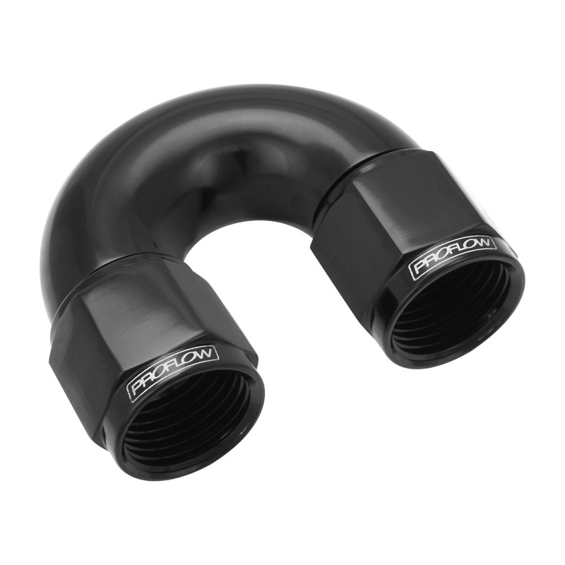 proflow 180 degree female flare union full flow swivel hose end -12an, black