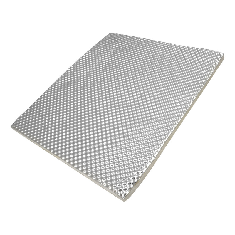 Our aluminised heat shield barriers are constructed from a heavy duty aluminium reflector cover with a woolen insulation layer. It has a high-temperature resistant adhesive backing for simple installation and can be used on firewalls, floor pans, transmission tunnels or any flat surface. Also helpful for sound suppression. Resistant up to 500°C. 10 mm thick.