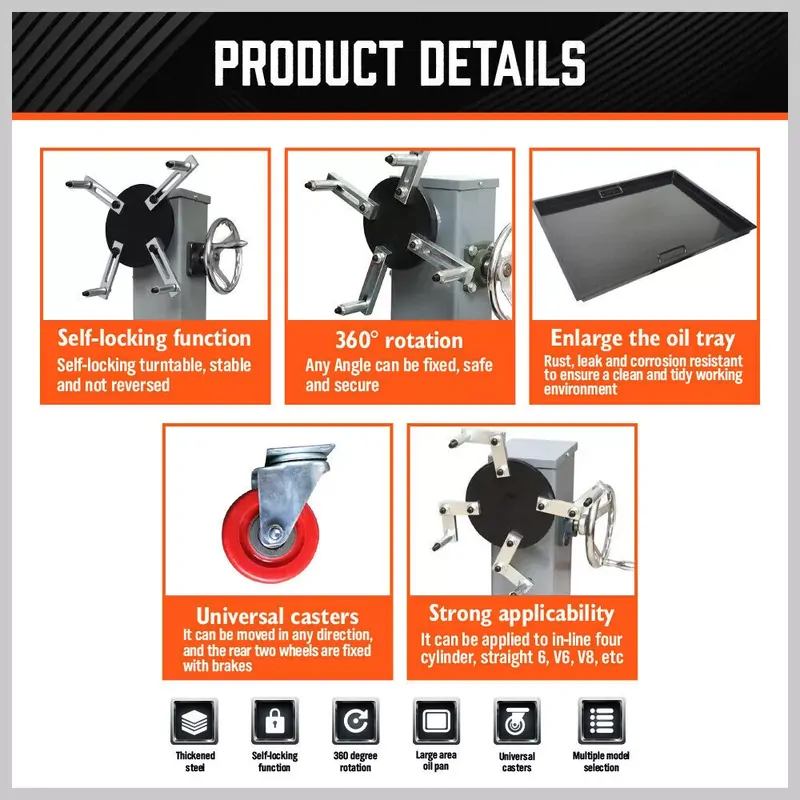 Fully adjustable mounting head secures rear of engine to the stand. Made of heavy gauge steel mechanical tubing construction.