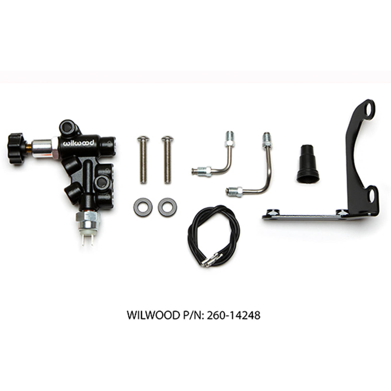 Wilwood finally has an elegant answer to the question, “Where do I mount my Combination Proportioning Valve?” with their new Mounting Bracket Kit. Specifically designed to work in conjunction with Wilwood Remote Tandem Master Cylinders in manual or boosted system applications. Kit includes: Stainless steel fluid tubes are precision bent with preinstalled stainless tube nuts for a simple bolt-on installation between the Combination Proportioning Valve and the Wilwood Tandem Master Cylinder. Stainless steel button head fasteners thread into the black e-coated L/H bracket for a simple installation and years of durable, rust-free performance. This complete Mounting Bracket Kit includes all the mounting hardware, plus a Combination Proportioning Valve, 260-11179.
