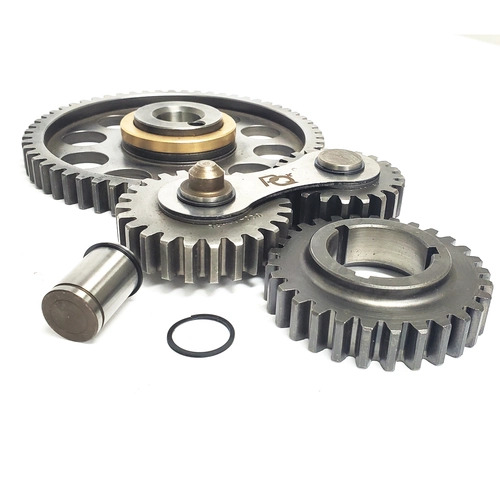 Replace your timing chain with a PRW Dual Gear Drive Set. These dual idler gear drives require little or no rebuilt machining. PRW steel alloy gears add longevity. Axial needle and cage thrust bearings and or/silicon bronze bushings reduce friction. Unlike timing chains, gear drives will not stretch or wear prematurely under extreme conditions. Offset bushings allow for easy cam indexing and timing changes.