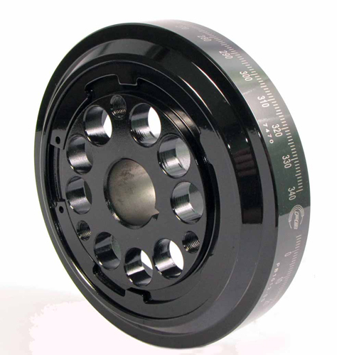 The steel inertia ring of the Race Series models is positively protected against forward and backward movement and has the assurance of bonded rubber to eliminate spinning.