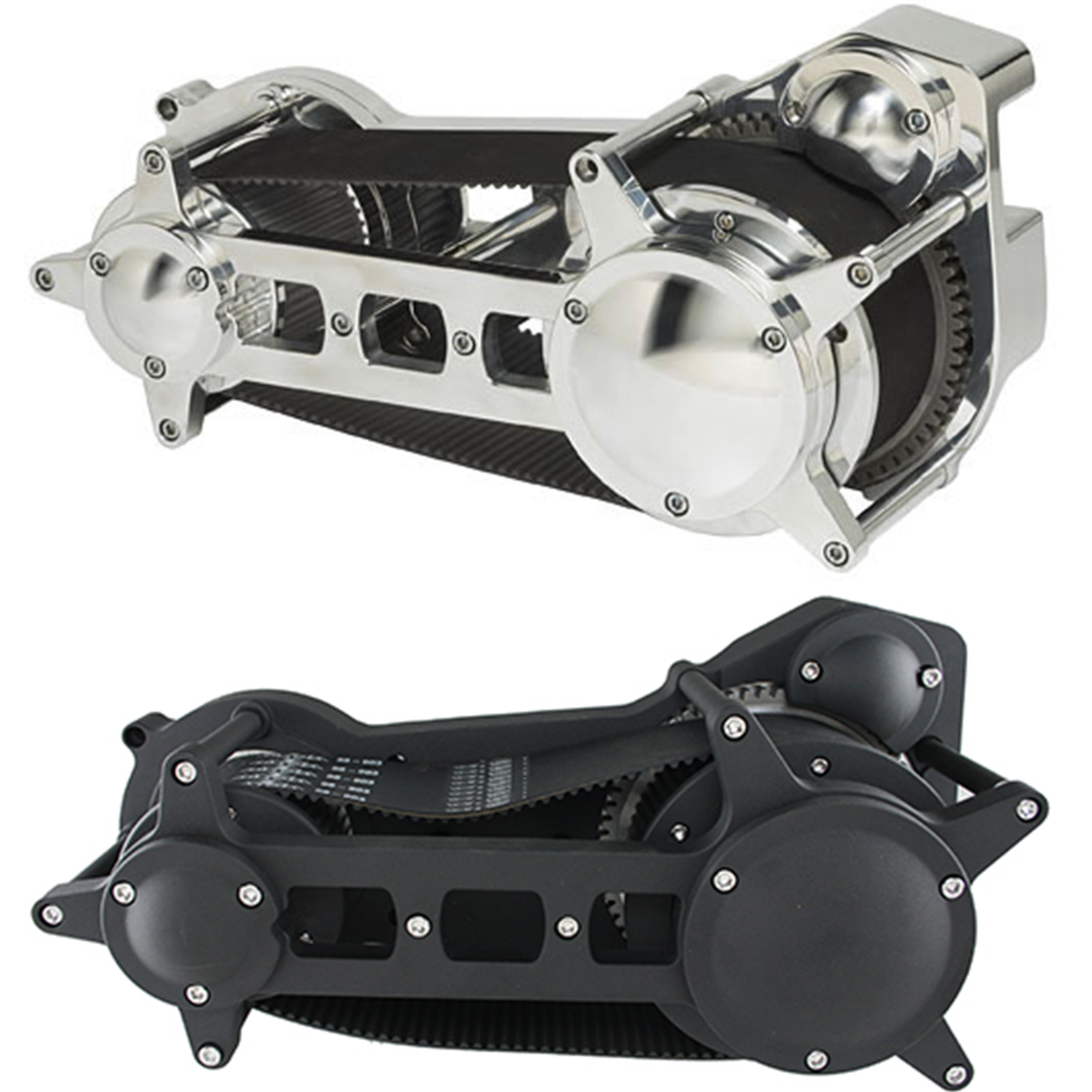 The Drag Race style unit with the out board support was designed to handle all the power you can throw at it, with an extra clutch assembly plate & Goodyear 85mm wide (3.35”) belts to put it to the ground.