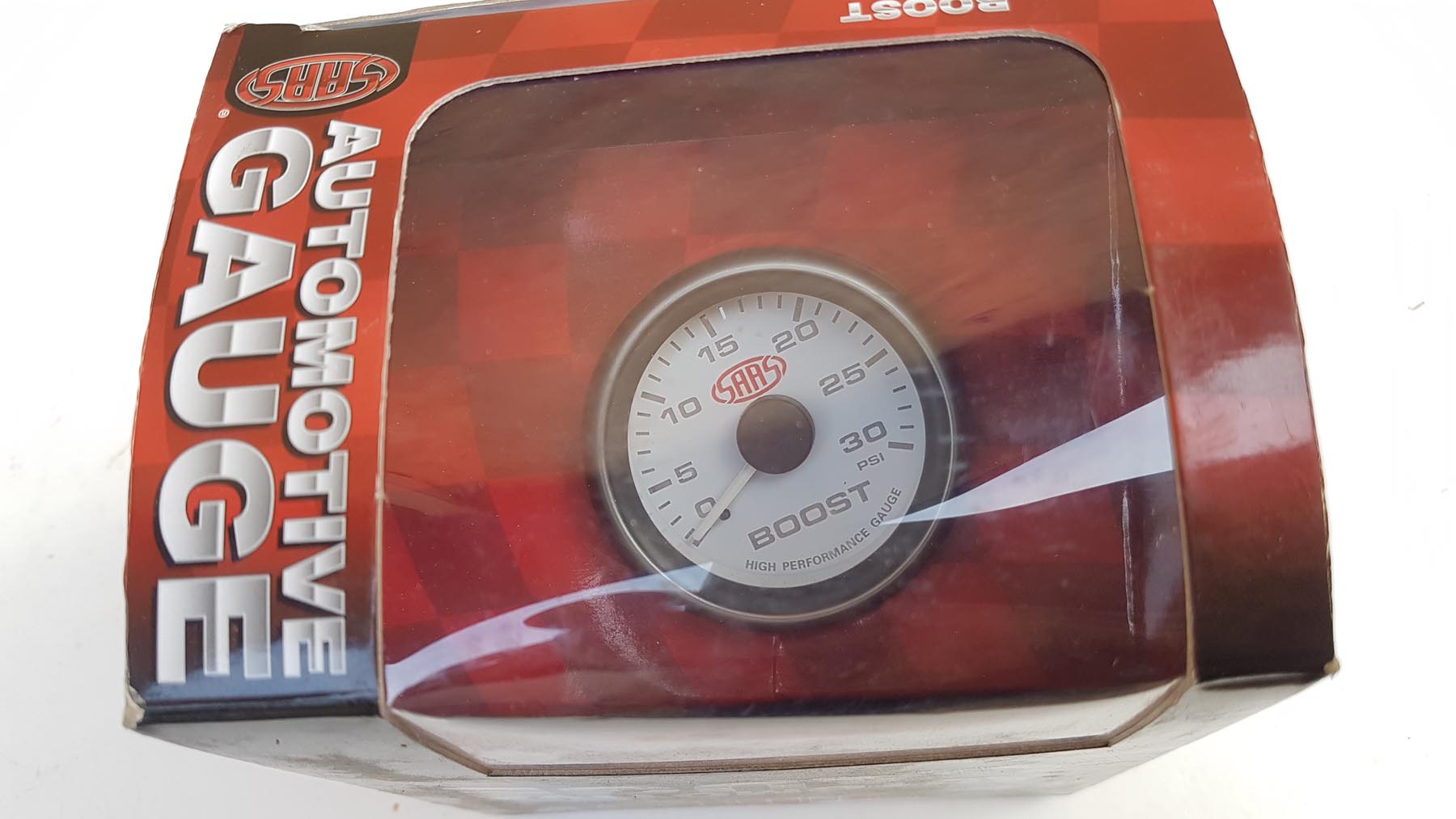 Saas Automotive boost gauge in as new condition in original box. Comes with all the cables, instructions, etc. never installed. From a garage cleanout. One of those projects that never happened. A lot cheaper than new in shops & the same result. Needs 52mm dia hole. Change face colour with touch of button. Pls check out my other items for sale. You won’t believe the variety. If it is still listed, it is still available.
