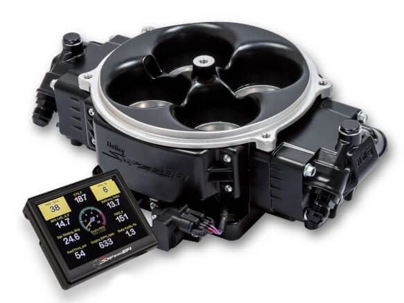 Introducing the Sniper Stealth 4500 EFI System! Wanting to convert your Dragster or Pro-street vehicle to Fuel Injection? Look no further! The Sniper Stealth 4500 EFI system from Holley features 8, 100LB/HR Fuel Injectors capable of supporting 800 to 1500 HP naturally aspirated, or 800-1250 HP on forced induction applications. The Sniper Stealth 4500 also features multiple Input and Output options for sensor inputs and switched outputs to control external relays. This system also comes with a USB to CAN tuning cable and free downloadable Sniper EFI Software give you unlimited control of your engineFeatures:Supports up to 1500 HP Naturally Aspirated or 1250 HP Forced Induction with Eight 100 Lb/Hr Injectors Compatible with Draw through or Blow through forced induction applications 2.125” Throttle Plates, Flow 1440 CFM for large cubic inch engines 2.5Bar MAP Sensor Integrated ignition timing control Programmable launch control via 2-step and timing retard. Both can be triggered by a trans-brake input Gen 3 Ultra Dominator Style 4 Bolt Air Cleaner Flange -8AN Fuel Inlets High Resolution Full Color Touchscreen for Initial Setup, Tuning, and Gauge Displays Simple Calibration Wizard (Answer a few questions about your engine and it creates the base map, then starts tuning on its own!) - NO laptop required Self-tuning ECU means you don’t have to be a computer/tuning wiz to have EFI! The included Genuine Bosch LSU 4.9 Wideband Oxygen Sensor provides realtime Fuel Map Learn Built-in Single Stage Wet or Dry progressive nitrous control Three Programmable 0-5V Sensor Inputs for Oil/Fuel/Dome or Nitrous Pressure or other critical information Six Programmable Ground Outputs, Five programmable ground inputs. These can be used to trigger or control external devices such as nitrous solenoids, boost control solenoids. Or to provide the ECU with an Input to turn on function such as an ignition timi One +5v Reference Output - +5V Power Supply for 0-5v Sensors, One Sensor Ground – Ground supply for 0-5v Sensors Throttle body mounted ECU – no extra boxes to mount Only 4 Wiring Connections Required! (Battery +, Battery - , Switched Ignition & RPM) Required external fuel pressure regulator, 12-848 is recommended Customizable secondary fuel pump output (TPS, RPM or Boost enabled) User friendly Boost Control with handheld adjustability Free Software included comprehensive datalogging tool to help you maximize the performance of your engine Real-time datalogging to the included 3.5” Touch Screen, allows you to save information to the SD card without needing a communication cable Programmable Target Air Fuel Ratios per Boost level Advanced boost control available via free Sniper EFI tuning software, including Boost vs RPM and Boost vs Time OEM Style TPS/IAC, for years of dependable service Included clamp-on oxygen sensor kit ensures a leak free oxygen sensor installation, with Stainless Steel T-Bolt clamps and a Stainless Steel (Weldable) oxygen sensor flange Patent Pending