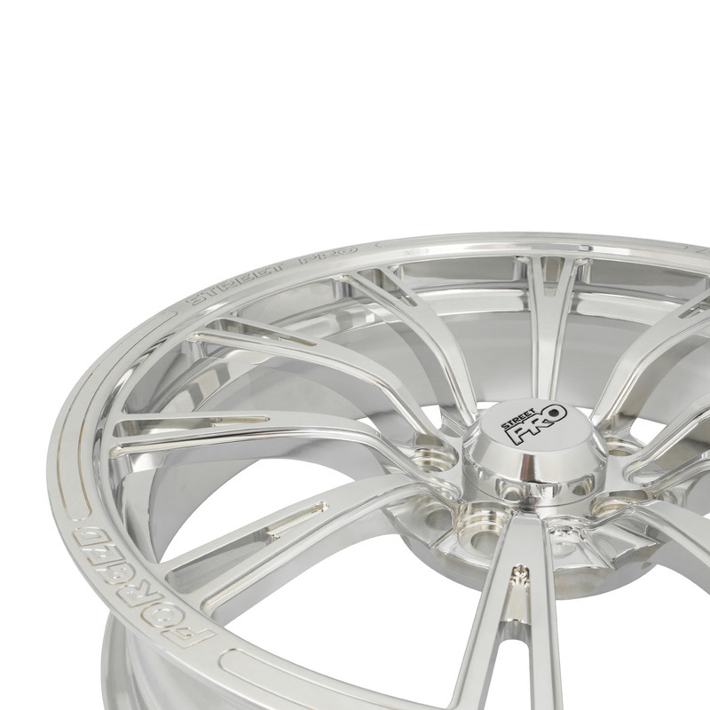 street pro 009 series forged wheel, front 17x4.5'' / 2.25'' backspace (-13) / 5x4.50" bolt circle ford, polished