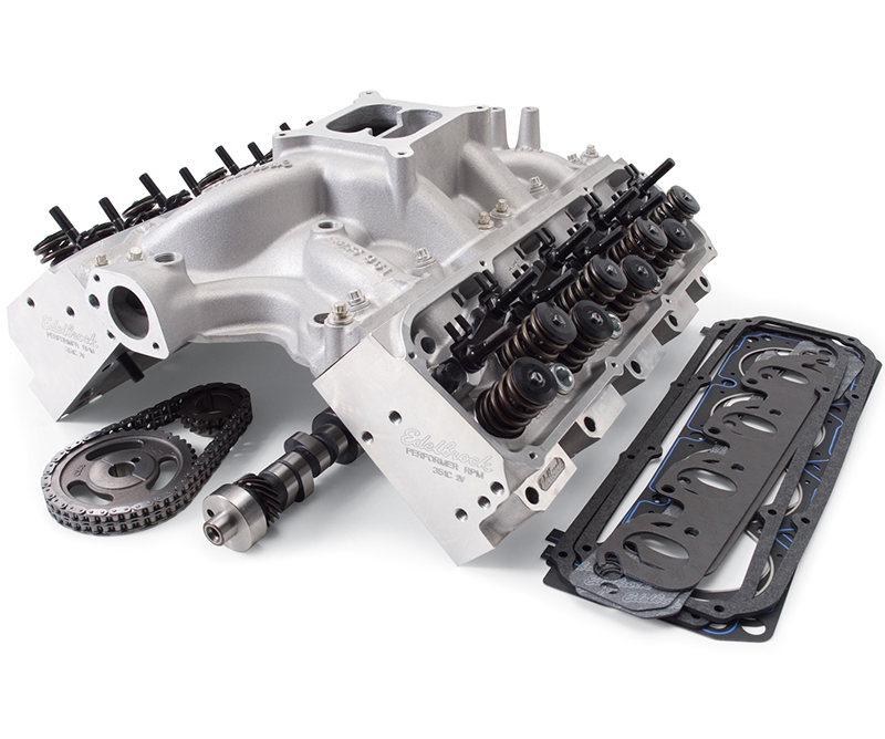 The Edelbrock Total Power Package® concept of selling dyno-matched components has been popular since the 1980s, but with the introduction of the Performer RPM Power Package Top End Kits, Edelbrock matched parts are now available under one part number! Our Top End Kits have been a huge hit due to their all-in-one-box convenience and "no guesswork" performance appeal. With just about everything you need to top off your Chevy, Chrysler or Ford, these Top End Kits are performance-proven.