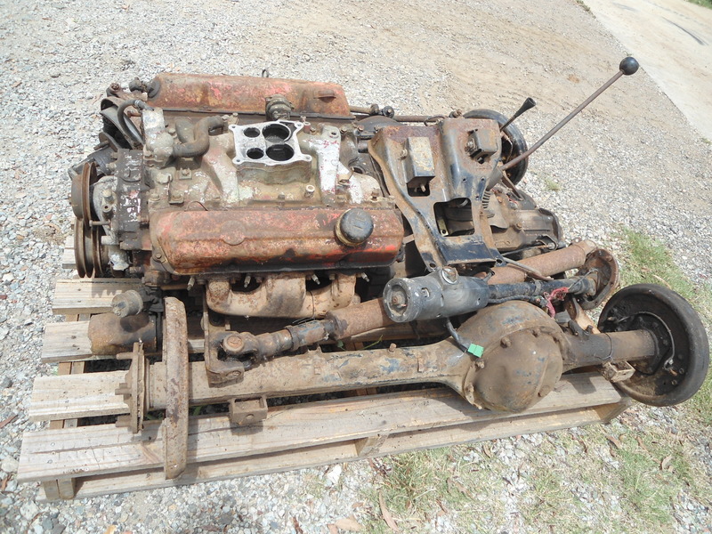 Toyota 55 Series. 308 V8 engine, coupled to 4 speed gearbox, front and rear diffs, springs, shocks and driveshafts. Needs rebuilt.