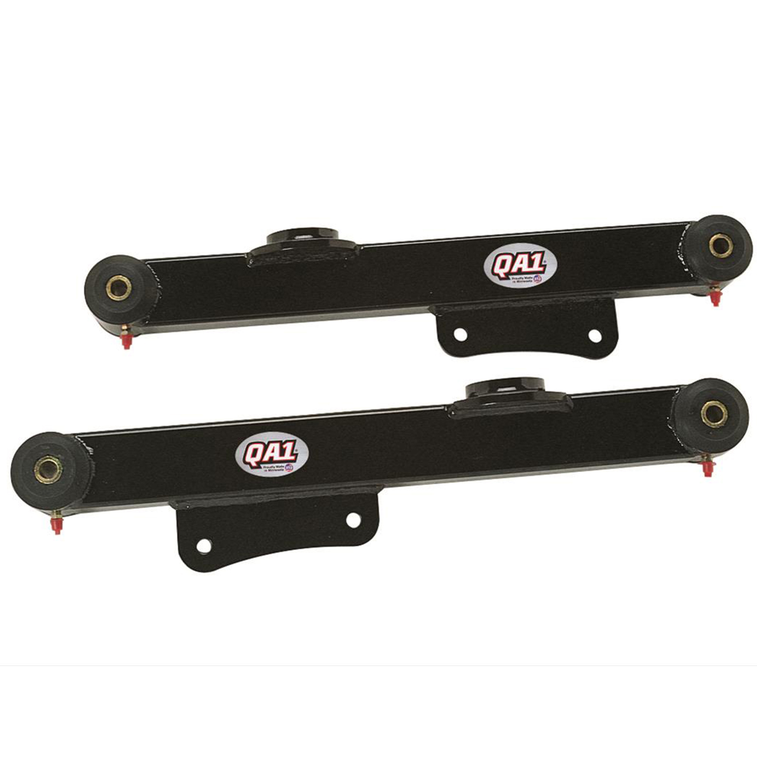 These QA1 rear trailing arms are manufactured from cold-rolled, rectangular steel tubing with .120 in. wall thickness for maximum strength. They will eliminate wheel hop and increase your vehicle's traction. Other features include greasable, fluted polyurethane bushings and an attractive black powdercoated finish.