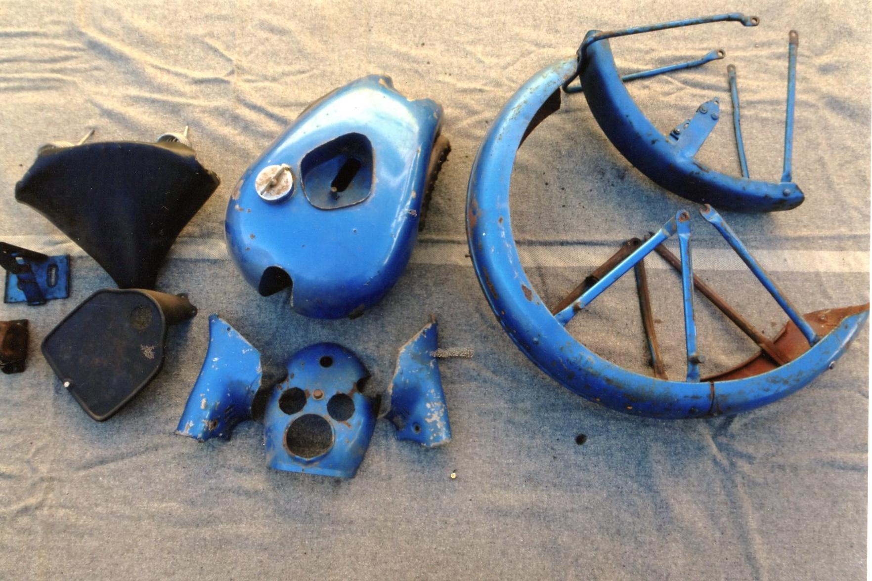 Gas tank, fenders, seat, battery carrier, regulator, nacelle with aluminium side pieces.