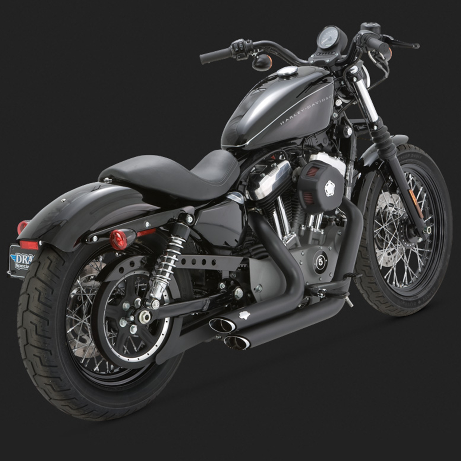 v&h short shots staggered black sportster 04-13 (04-06 models need v16925 o2 sensor bungs)