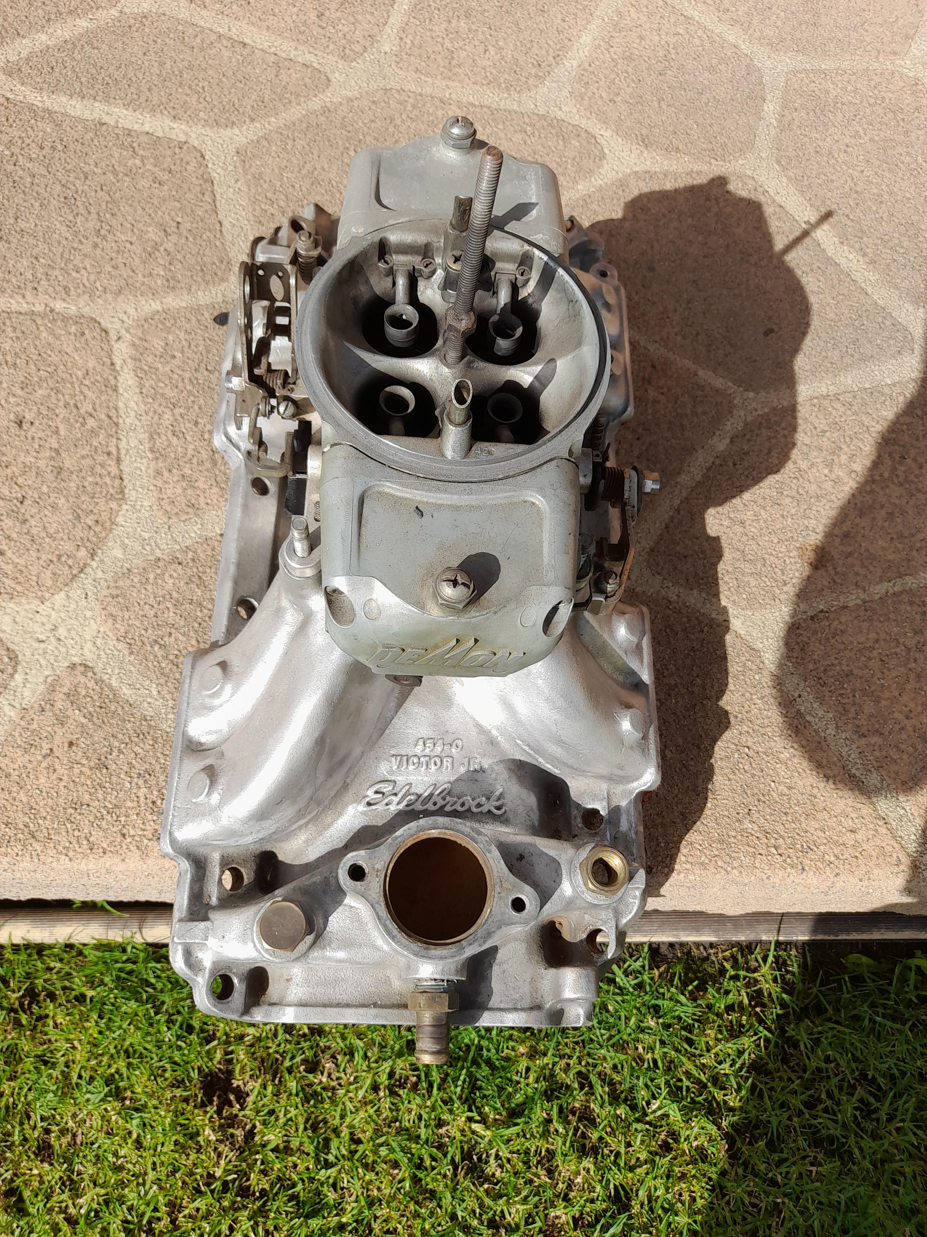 With 825 CFM Barry Grant carburettor, almost new to suit Chev big block.