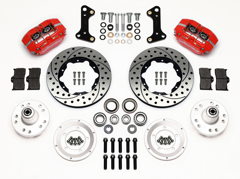 DP-DB Big Brake Front Hub Kits provide the added advantage of larger diameter brake rotors for traditional non-ABS spindles on American muscle cars and vintage rods. Dynapro Dustboot calipers, 12.19in. diameter rotors, and high performance Wilwood brake pads generate big brake stopping power. These kits were developed for applications or locations that require or prefer a dust-sealed piston. Dust-boot sealed aluminum pistons provide added protection against road or track born dirt and debris on low to intermediate temperature range applications that may also operate in harsh environments. A full range of options for caliper finish and rotor design provide custom builders with the ability to personalize the style and performance requirements of the mildest to the wildest machines.