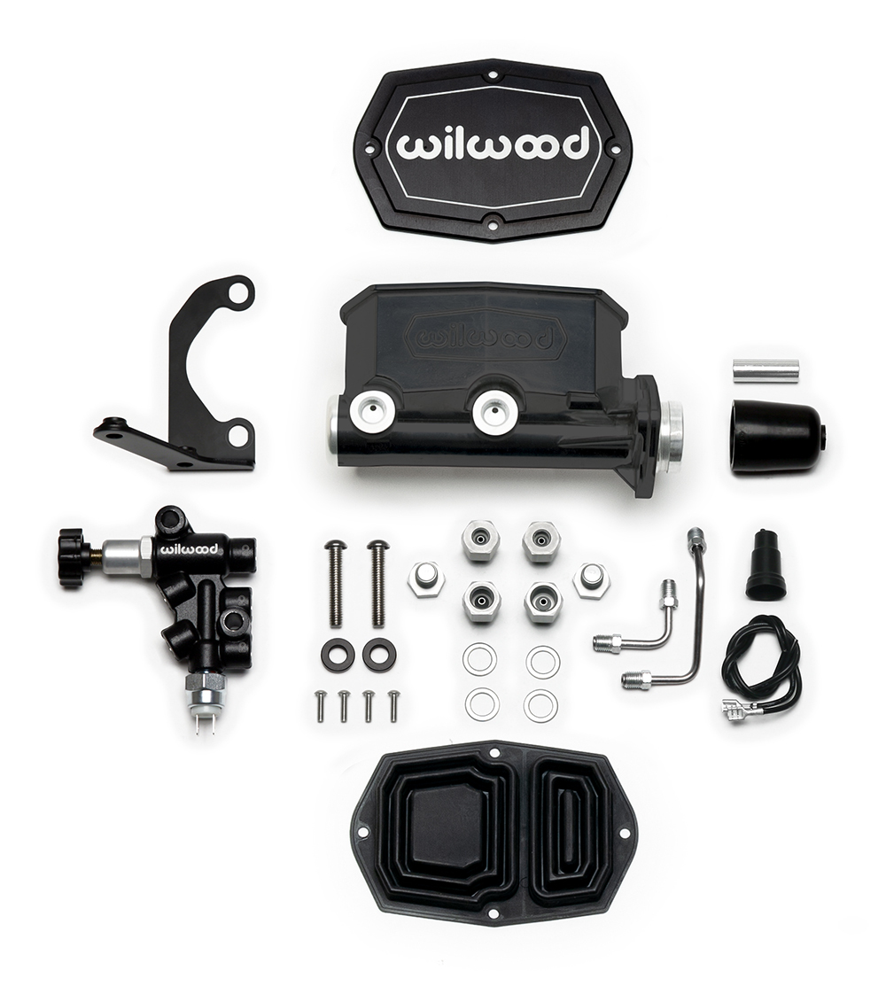Wilwood has packaged the new Compact Tandem Chamber Master Cylinder with the Combination Proportioning Valve, R/H mounting bracket, fluid tubes and mounting hardware in a kit. Tandem Master Cylinder represents the latest in refinements in brake pressure actuation and fluid control in a compact package with only 6.55 in. from mounting flange to end. The slotted flange mounting makes it a simple bolt on for many OE mounts including the popular Chrysler, Corvette, GM, and Ford Mustang bolt patterns and is compatible with manual or power brake system applications. Master cylinders without pushrods are generally intended for power brake use and available in two bores sizes, 1.00 or 1-1/8, and two finishes, ball burnished or black E-coat. The combination proportioning valve substantially simplifies wiring and brake proportioning adjustments on vehicles with custom brake systems. The combination block maintains full isolation between front and rear fluid circuits and is specifically designed to accompany the Tandem Chamber Master Cylinder. The combo valve and Right-hand side bracket are black E-coated for a performance look and long lasting durability. Stainless steel fluid tubes are precision bent with preinstalled plated steel tube nuts for a simple bolt-on installation between the Combination Proportioning Valve and the Wilwood Tandem Master Cylinder. Stainless steel button head fasteners thread into the bracket for a simple installation and years of durable, rust-free performance. Simply connect the fluid lines, bleed the system, and you're finished.
