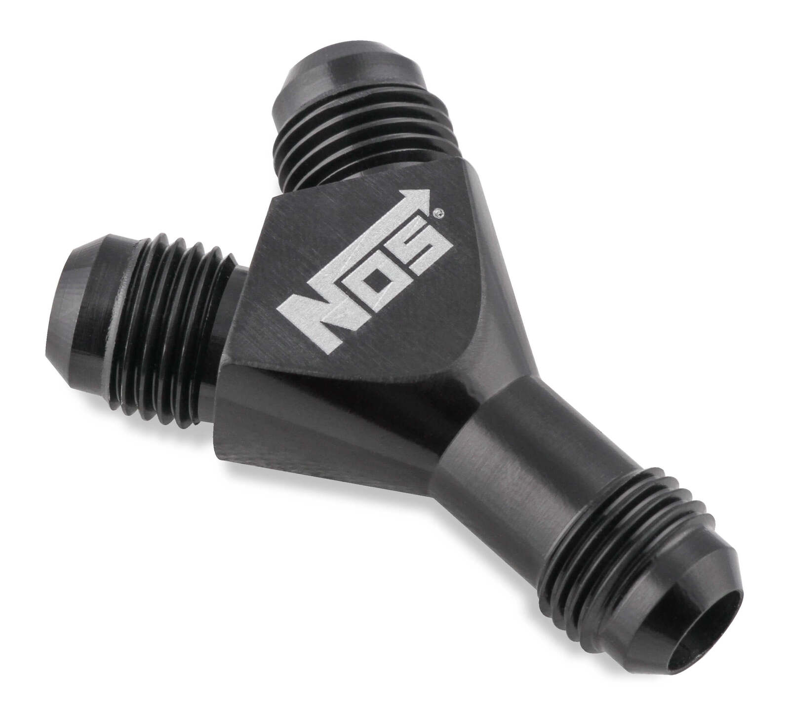 NOS introduces black AN Y-block adapters for your nitrous plumbing needs. Each Y-block is made from 2024 aluminum forging for excellent strength and durability. They feature a tough black anodized finished and available in -4AN up to -10AN sizes.